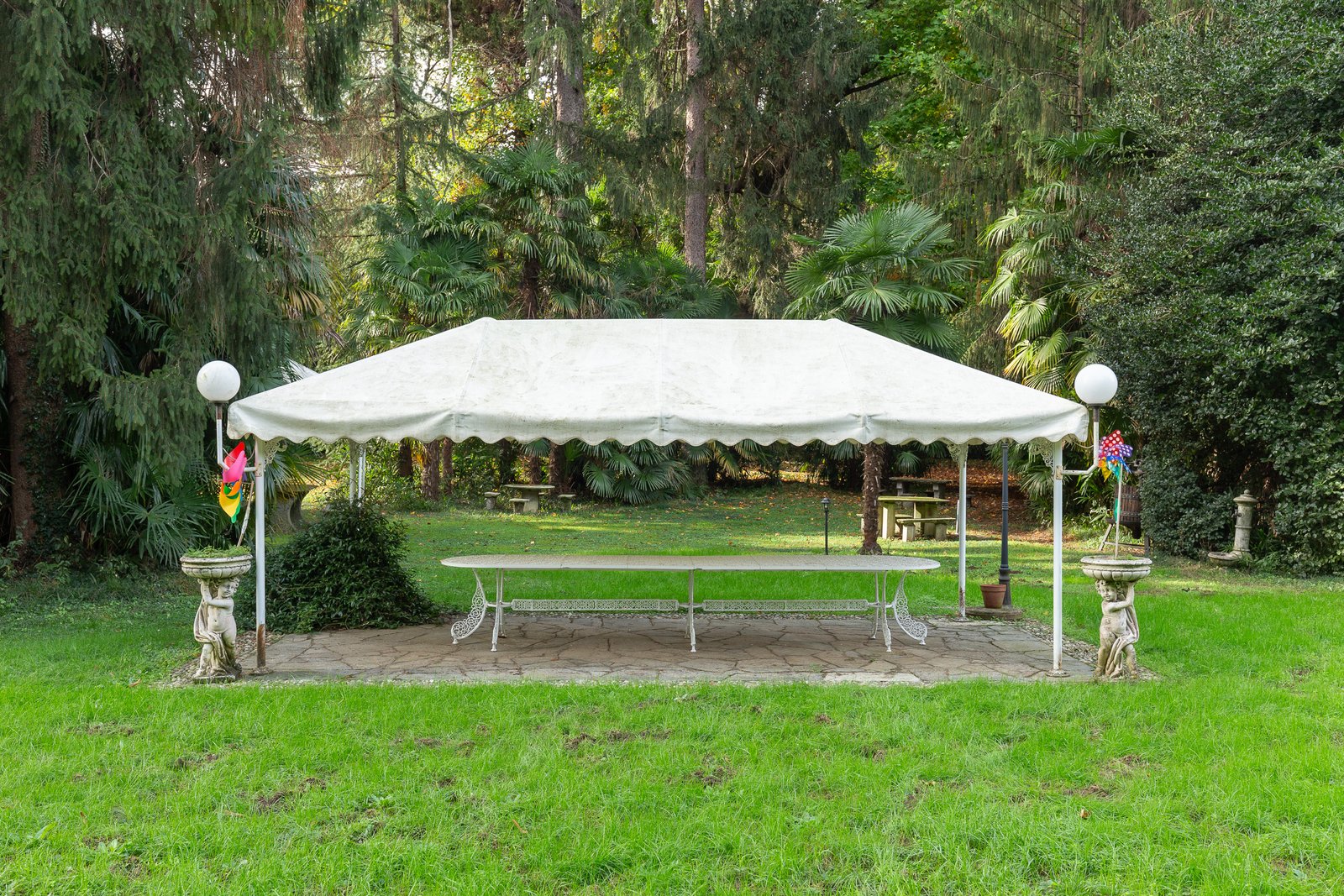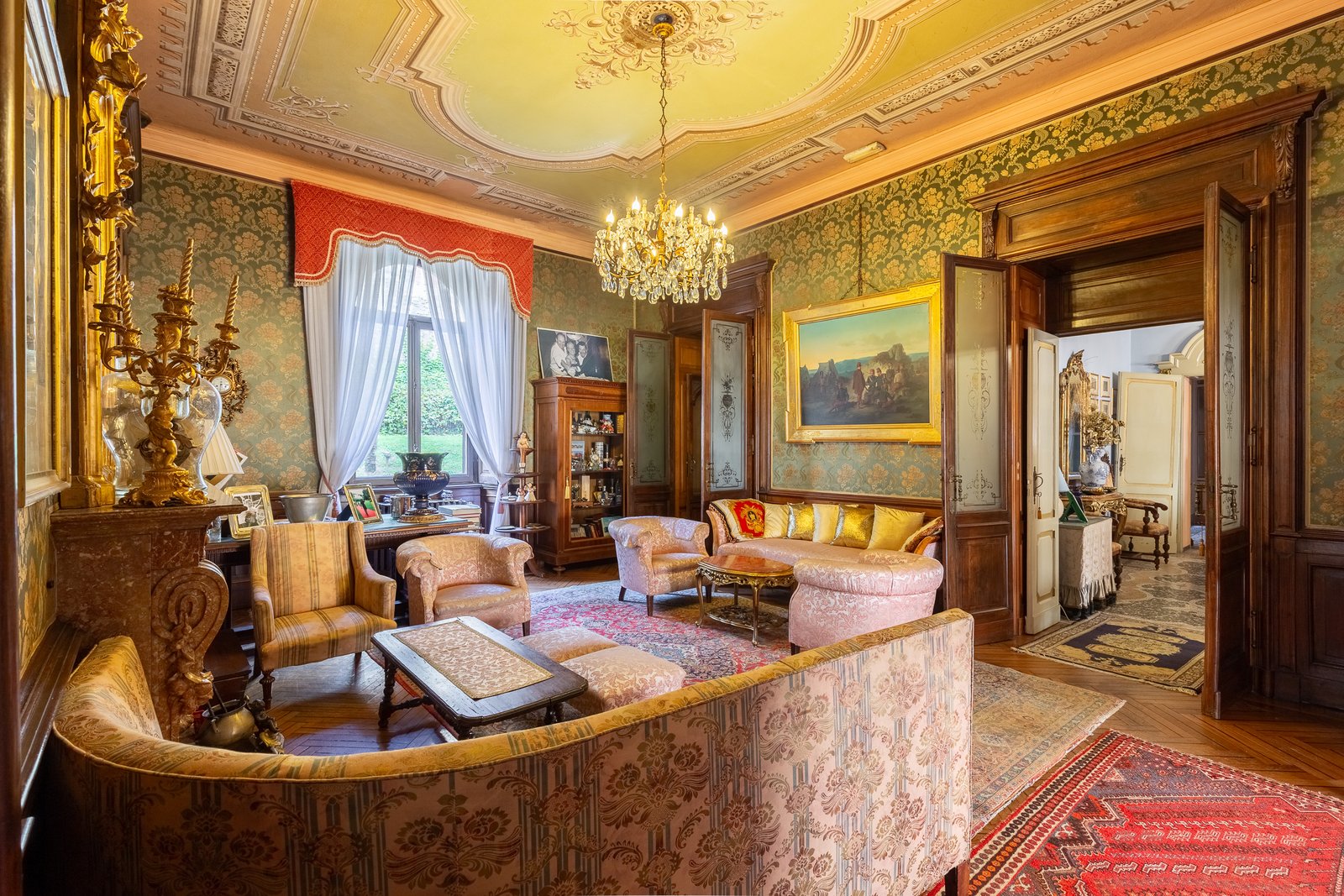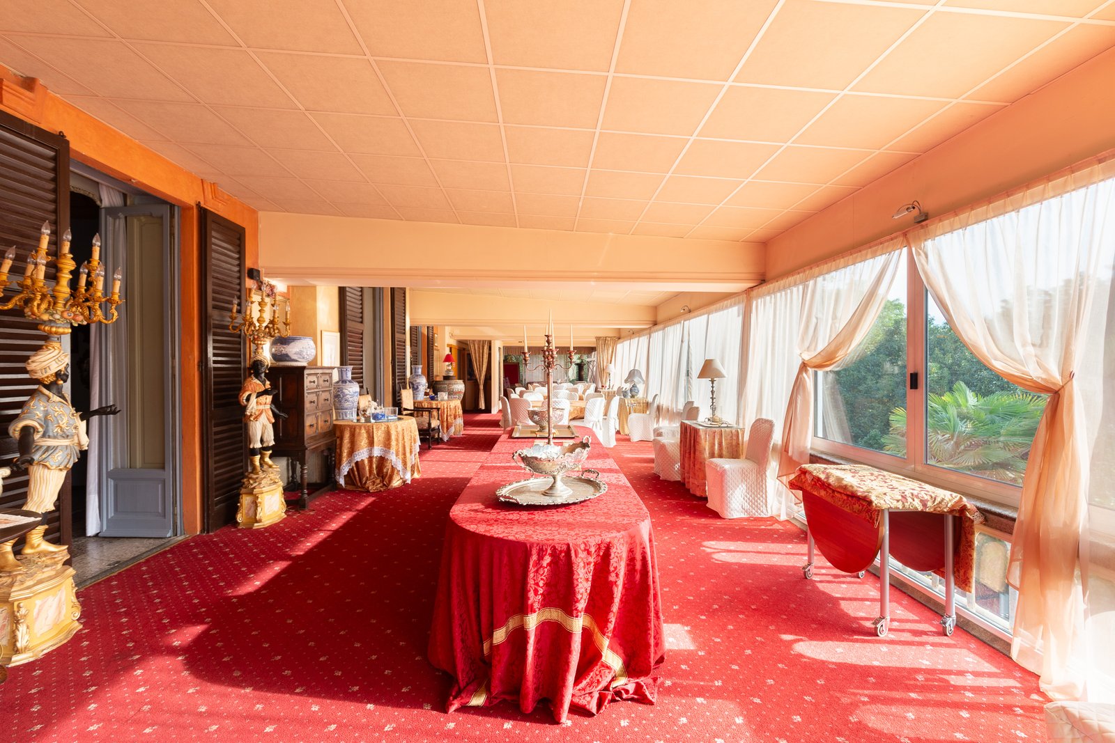 • Il piano terra è costituito da varie sale di rappresentanza, nella parte antistante è sato ricavato un ampio salone mediante chiusura di preesistente terrazzo con affaccio parco, inoltre sono presenti una cucina servizi igienici vari.