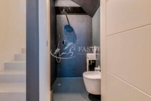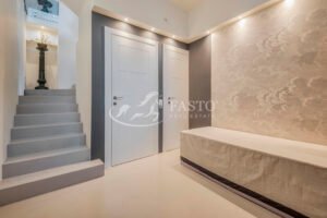 Al piano d’ingresso troviamo uno studio (o zona ingresso), un bagno per gli ospiti e una comoda lavanderia. Al piano superiore si apre un ampio soggiorno triplo, biesposto e luminosissimo grazie alle quattro finestre, una cucina separata con finestra, un grande bagno padronale, una spaziosa camera matrimoniale con cabina armadio e cassaforte.