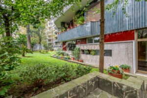 A pochi passi dalla fermata De Amicis della linea M4 — che collega comodamente all’aeroporto di Linate in soli 14 minuti — questa residenza, disposta su due livelli e affacciata esclusivamente sui giardini e sul Parco Arena, offre un contesto abitativo davvero unico.