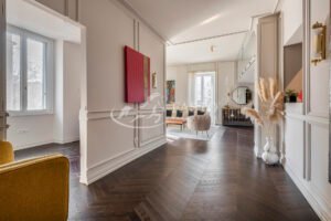 Scopri un'elegante soluzione abitativa nel centro di Milano, a soli 2 minuti da piazza Medaglie D'oro e MM Porta Romana. Questo plurilocale su due piani, situato al 2° e 3° piano, offre un perfetto equilibrio tra comfort e stile. L'ingresso accoglie con un disimpegno dotato di armadiature su misura e boiserie, creando un'atmosfera raffinata sin dal primo passo.