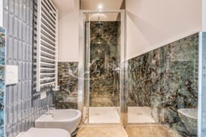 Al piano superiore, la suite ospiti offre un bagno privato, garantendo privacy e comfort. L'appartamento è totalmente ristrutturato e viene venduto semi arredato, pronto per essere abitato. Con una superficie commerciale di 160 m², dispone di 5 locali e 2 bagni, oltre ad ampi balconi per godere di momenti di relax all'aperto.